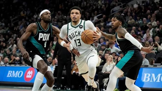 喧宾夺主,开拓者下起三分雨,淹没雄鹿队,杨瀚森无机会登场