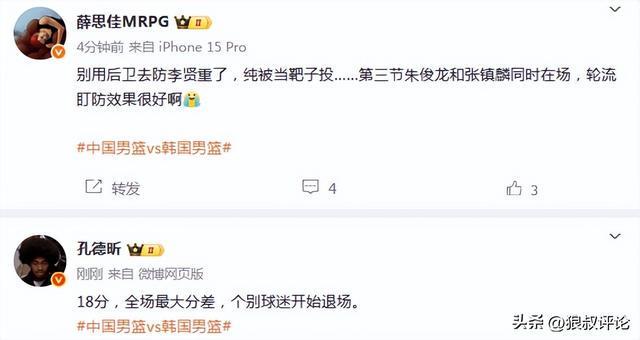 球迷对于本场比赛男篮的表现引发多方面的质疑,尤其是长时间使用三后卫,以及战术就是单打周琦。