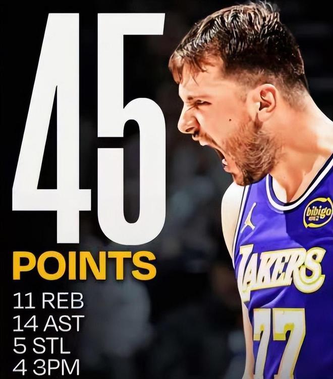 超级大核,东契奇28中14爆砍45分11板14助5断,湖人队史首人