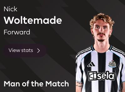 半场双响,沃尔特马德当选纽卡vs切尔西全场最佳球员