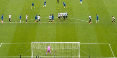 第49分钟,里斯-詹姆斯主罚禁区前任意球右脚劲射破门,1比2!